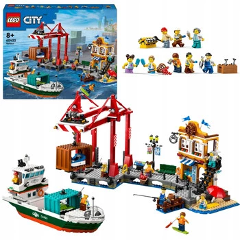 LEGO City 60422 Port Morski ze Statkiem Towarowym Statek Łódź