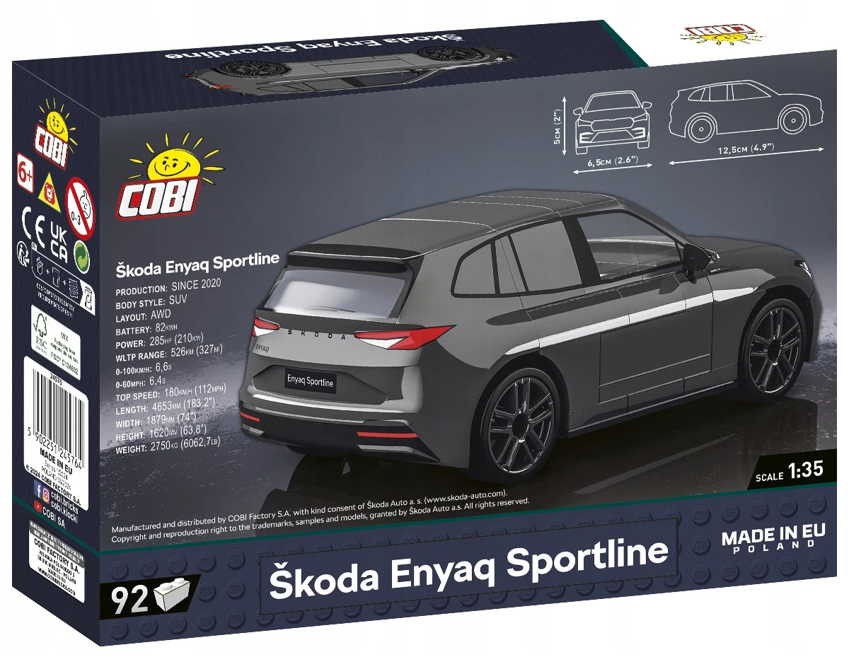 ➡️Model w skali 1:35 złożony w 100% z klocków COBI bardzo wiernie oddaje charakterystyczne kształty oryginalnego samochodu Skoda Enyaq Sportline.