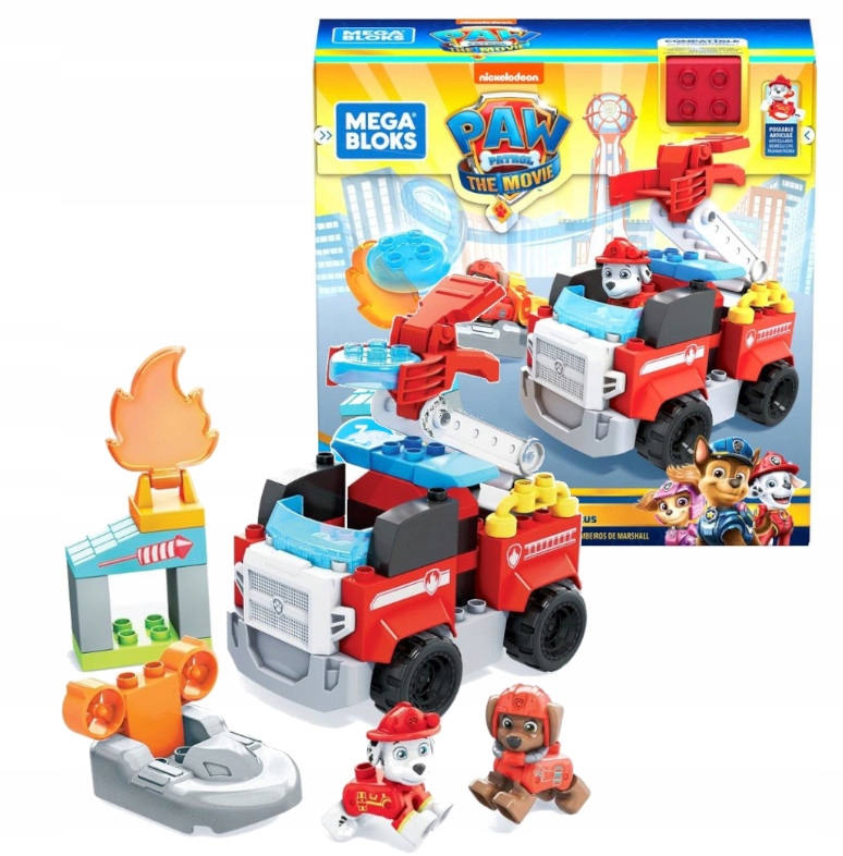Dzięki zestawowi Mega Bloks Psi Patrol dziecko może skonstruować wóz strażacki Marshalla z wyrzutnią i ruchomą drabiną oraz poduszkowiec Zumy.