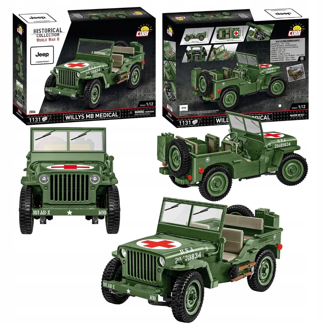 Klocki Wojskowe COBI 2806 Samochód Jeep Willys MB Medical Duży 1131EL. Auto
