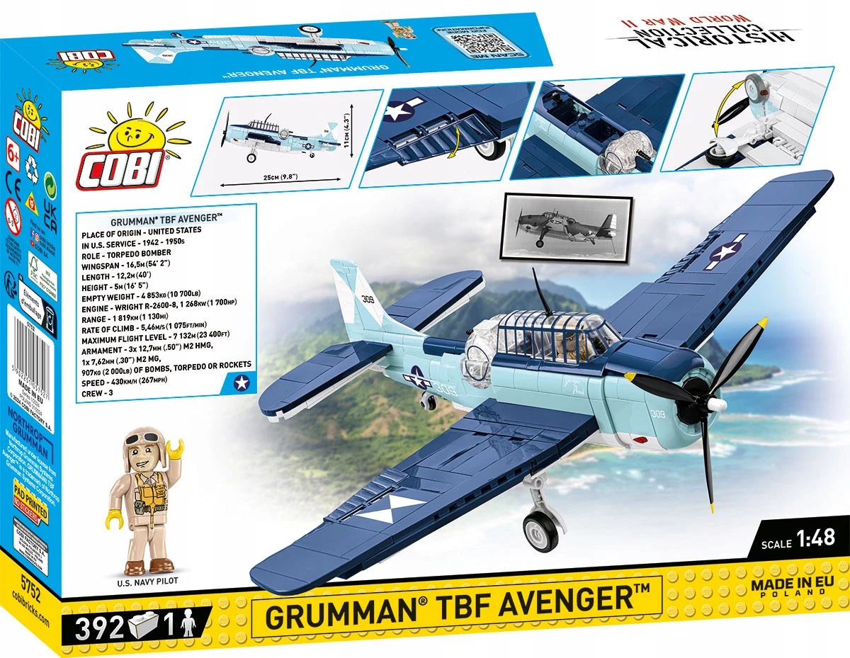 ➡️Legenda lotnictwa Marynarki Wojennej Stanów Zjednoczonych! TBF Avenger został przez nas odwzorowany przy wykorzystaniu 392 klocków konstrukcyjnych COBI w modelarskiej skali 1:48.