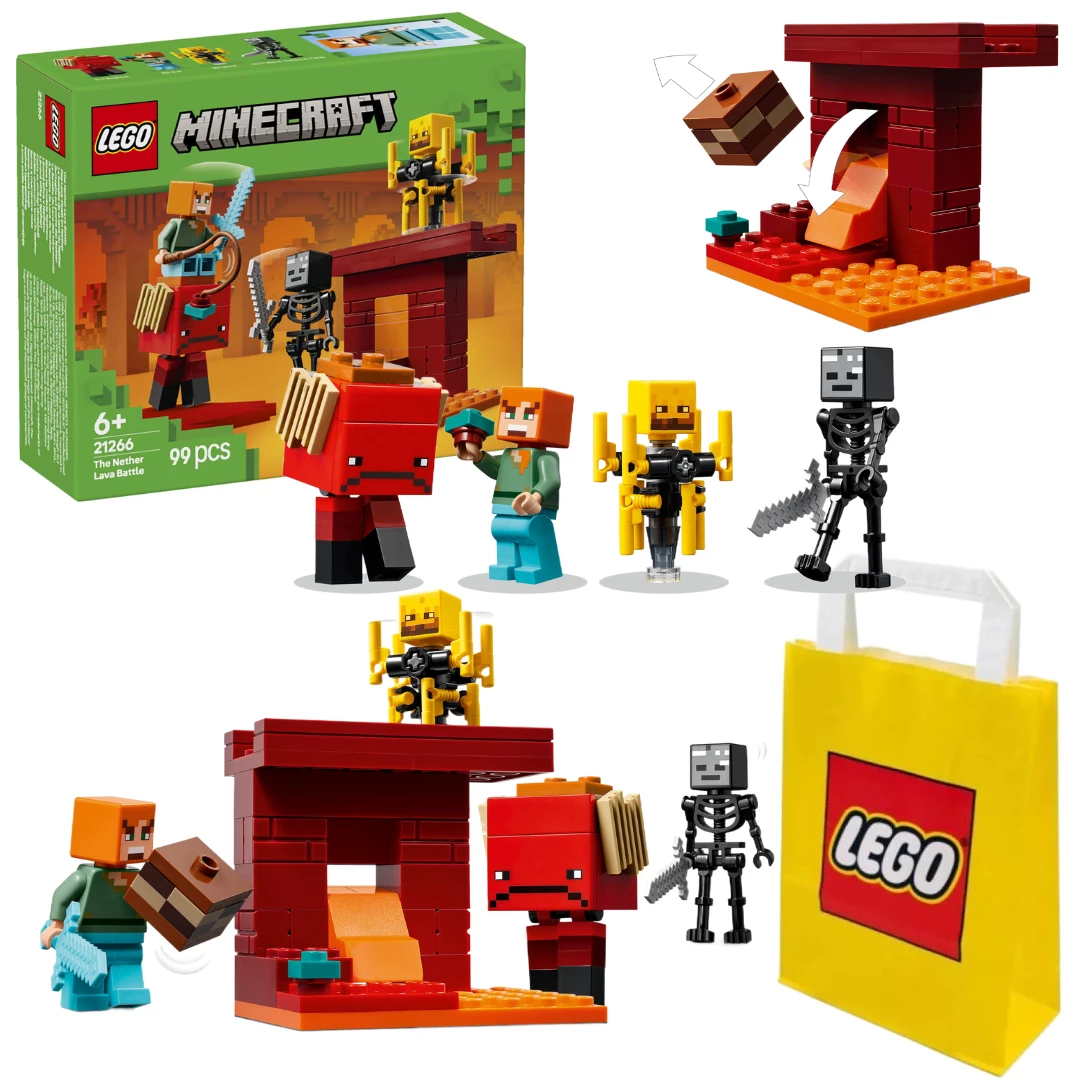 ➡️Zestaw z gry Minecraft® — zawiera most fortecy Netheru do zbudowania oraz figurki LEGO® Minecraft z bronią i akcesoriami: Alex, mroczny szkielet i magmołaza
