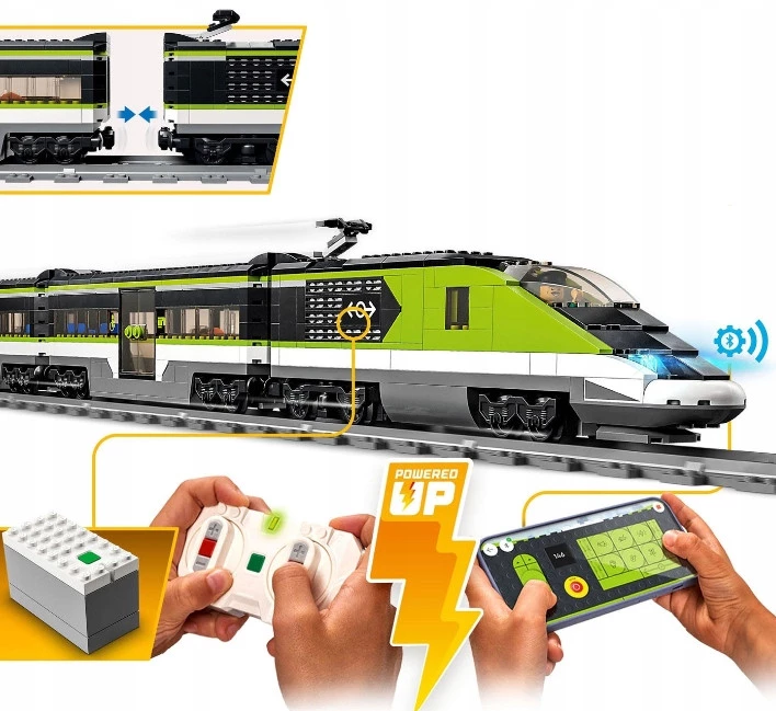 ➡️Elementy i funkcje — pociągiem i jego ściemnianymi reflektoramimożna sterować za pomocą dołączonego pilota lub urządzenia przenośnego z zainstalowaną aplikacją LEGO® Powered Up