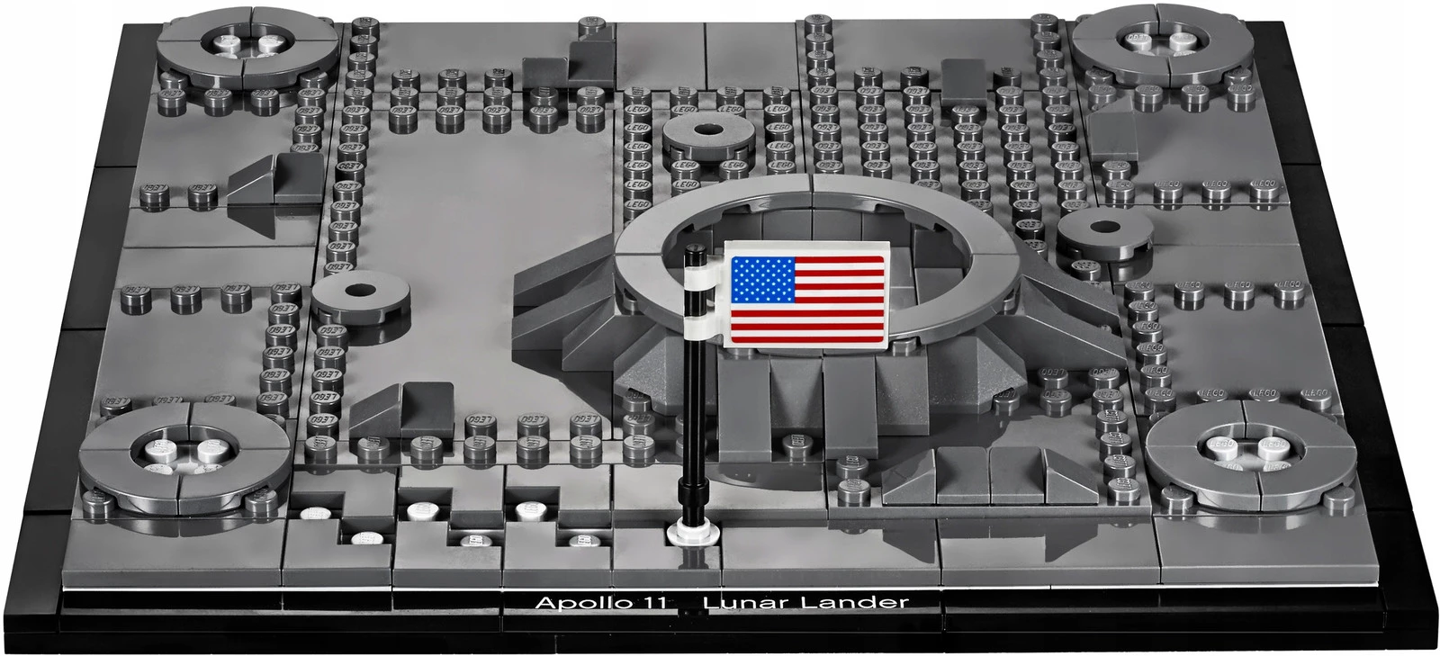 ➡️Nowe elementy (nowości na czerwiec 2019 r.) to płytka z nazwą „Apollo 11 Lunar Lander” oraz złote części lądownika.