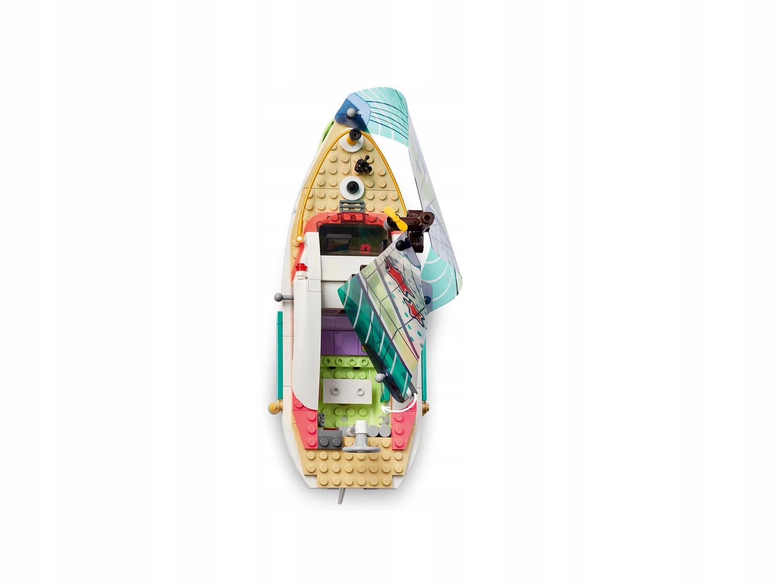 W zestawie znajdują się klocki i elementy potrzebne do stworzenia realistycznej łodzi z elastycznym żaglem i linią mety, a także z trzema minilaleczkami LEGO® Friends
