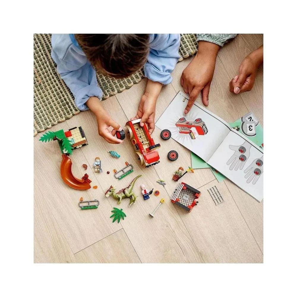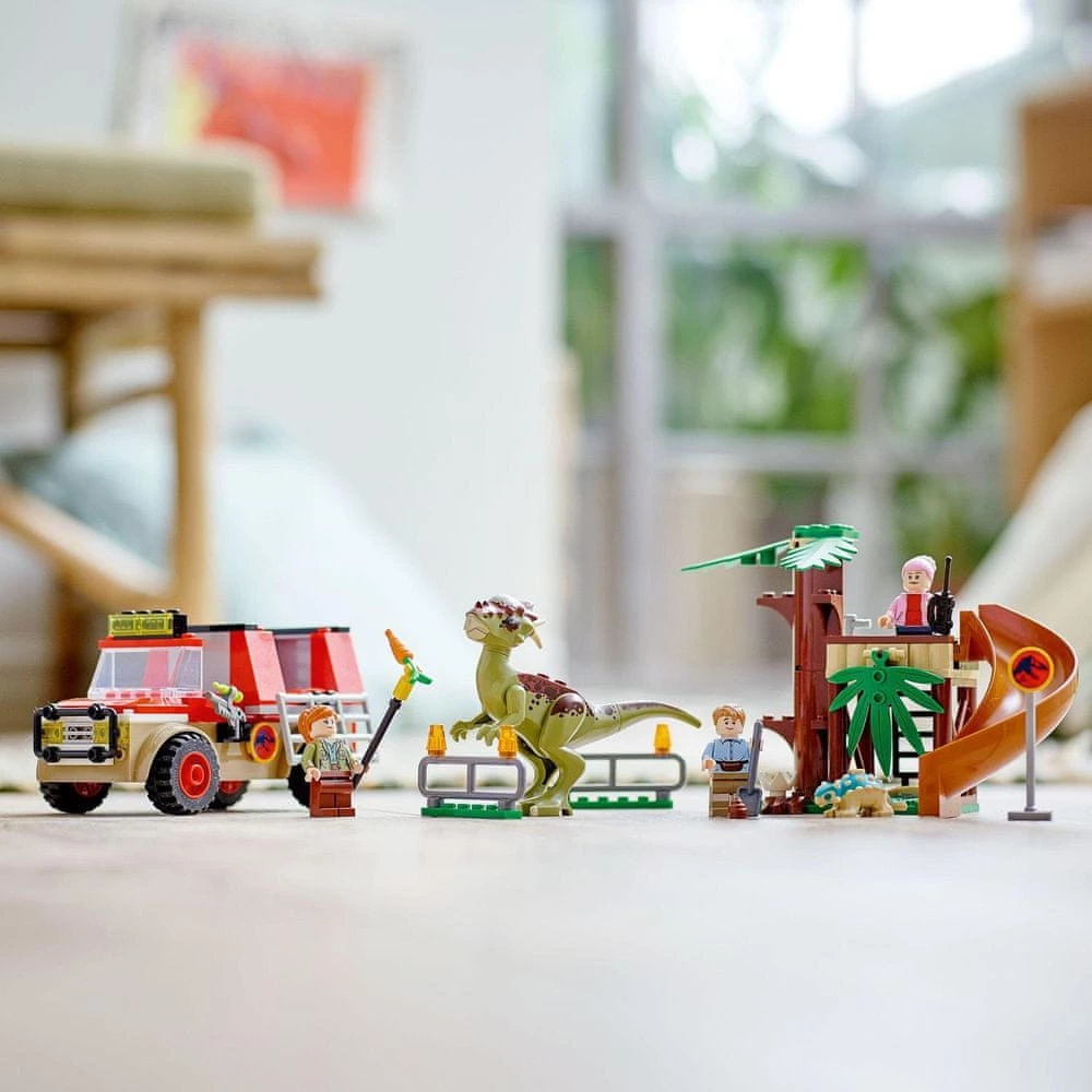 Zestaw Ucieczka stygimolocha (76939) pozwoli maluchom poćwiczyć budowanie i odegrać ekscytujące historie. W zestawie inspirowanym serialem animowanym „Park Jurajski: Obóz kredowy” czeka mnóstwo atrakcji: stygimoloch i mały ankylozaur Bumpy, pojazd terenowy z odłączaną klatką dla dinozaura, a także domek na drzewie z wieloma detalami i zjeżdżalnią dla Bumpy’ego. Są tam też trzy minifigurki i wiele akcesoriów, więc pomysłów na zabawę z pewnością nie zabraknie.