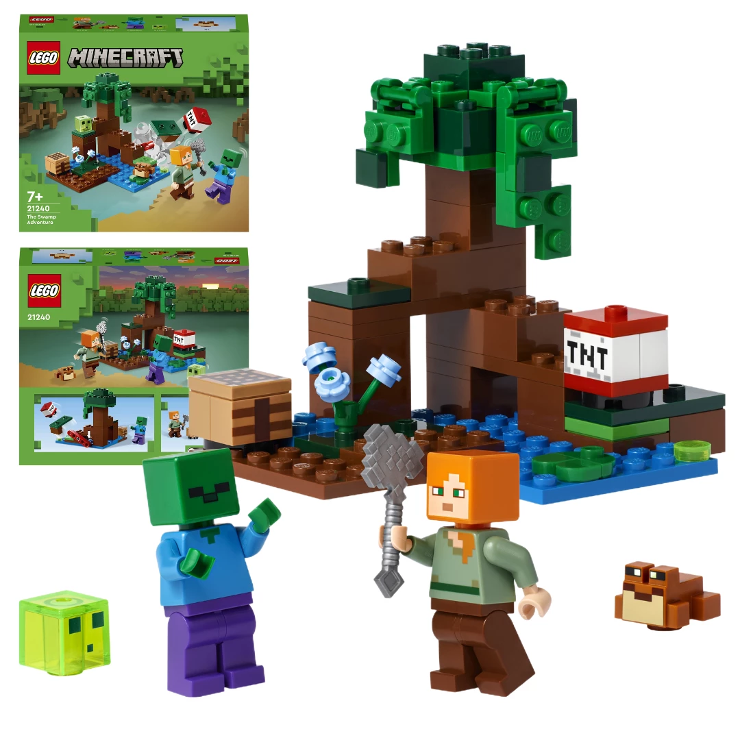 LEGO® Minecraft Przygoda na mokradłach (21240) przedstawia mokradła z gry pełne funkcji i elementów do budowania i odgrywania pojedynków