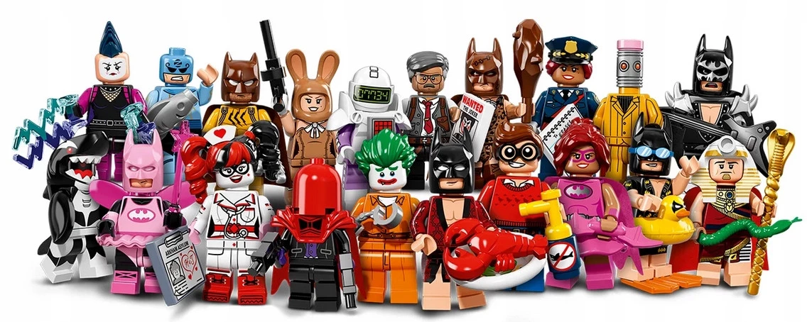 ✅Znajdziesz tu takie minifigurki, jak Batman™ miłośnik homarów, Eraser™, Zodiac Master™, Król Tut™, Batgirl™ różowa moc, Dick Grayson™, Orca™, Wróżka Batman™, Batman™ glam metal, Batman™ klan jaskini, Batman™ wakacyjny, Joker™ – Azyl Arkham, Calculator™, Red Hood™, Komisarz Gordon™, Barbara Gordon™, March Harriet™, Mim™, Catman™ i Pielęgniarka Harley Quinn™.