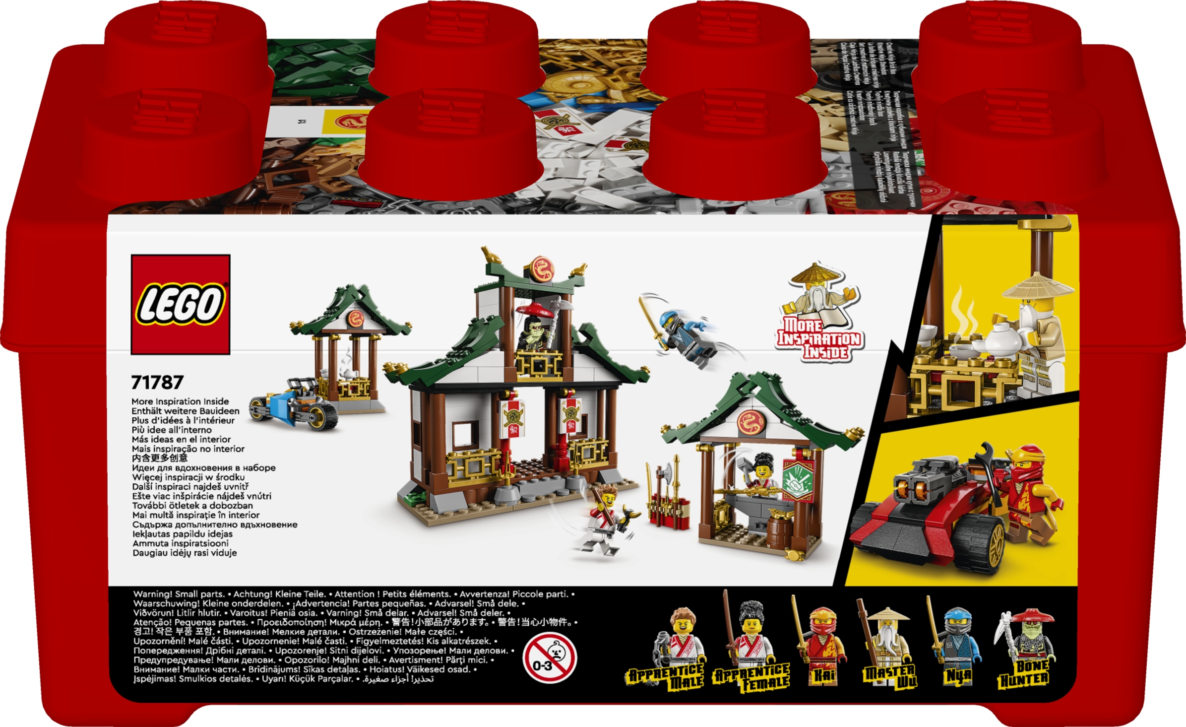 W zestawie jest też sześć minifigurek: Nya, Kai, mistrz Wu, uczniowie płci męskiej i żeńskiej oraz myśliwy-szkielet z broniami. Po raz pierwszy zestaw NINJAGO jest dostarczany w pudełku z klockami, aby zachęcić dzieci do użycia wyobraźni do budowania własnych budynków i pojazdów. Stanowi również doskonałe miejsce do przechowywania oraz do szybkiego i łatwego sprzątania.