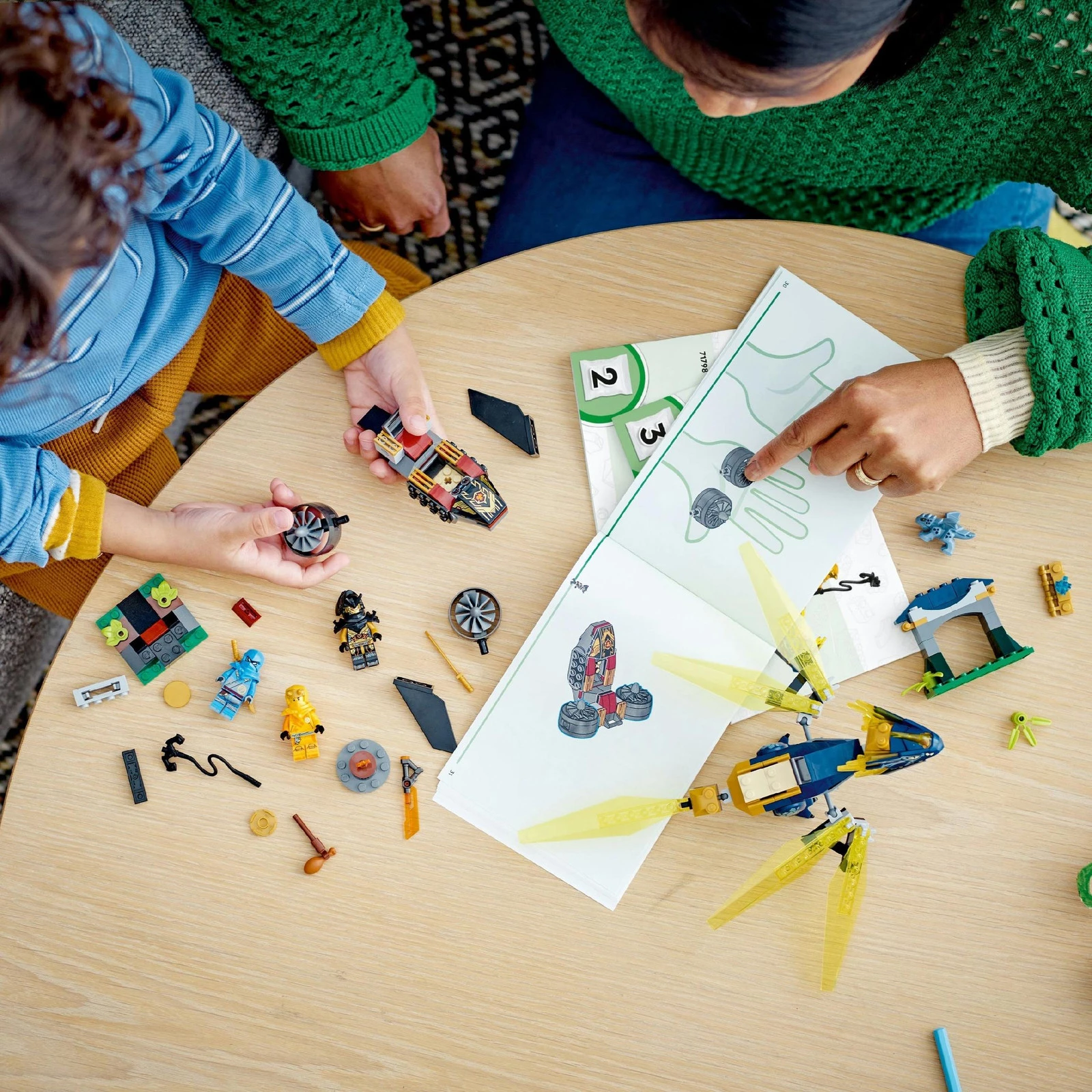 Dzięki zestawowi Nya i Arin — bitwa na grzbiecie małego smoka dzieci w wieku od czterech lat mogą odtwarzać sceny z serialu telewizyjnego NINJAGO® Dragons Rising i uczyć się budowania