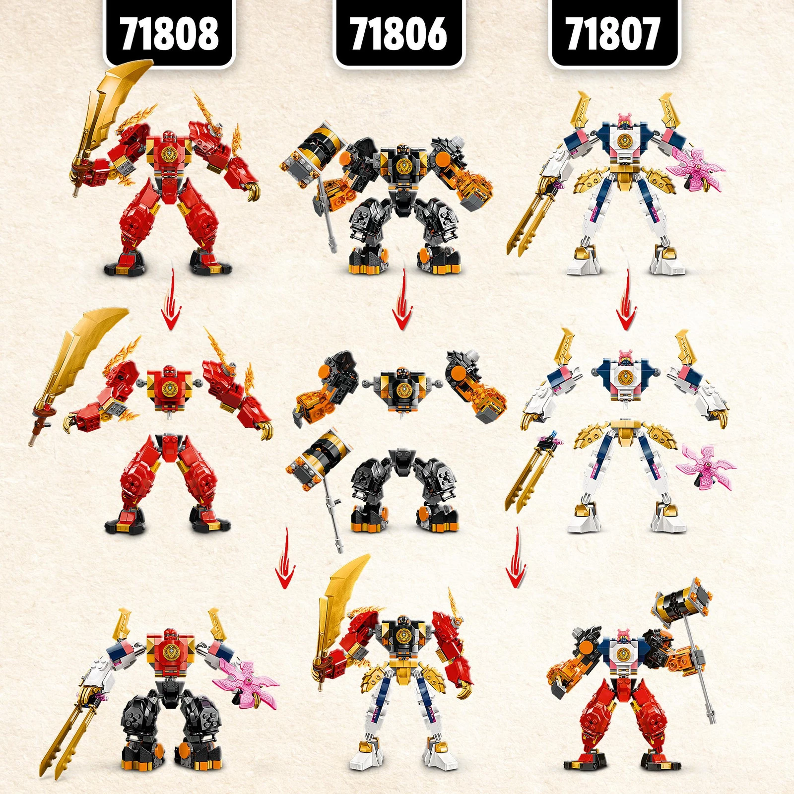 Mech do przebudowywania pozwala dzieciom zbudować własnego mecha! Jego odłączane nogi, ręce i tułów można połączyć z częściami dwóch innych mechów: Mecha żywiołu ziemi Cole'a (71806) i Mecha żywiołu technologii Sory (71807) (sprzedawanych osobno). Mieszanie i dopasowywanie części może zapewnić dzieciom wiele godzin świetnej zabawy, podczas której stworzą unikatową figurkę.