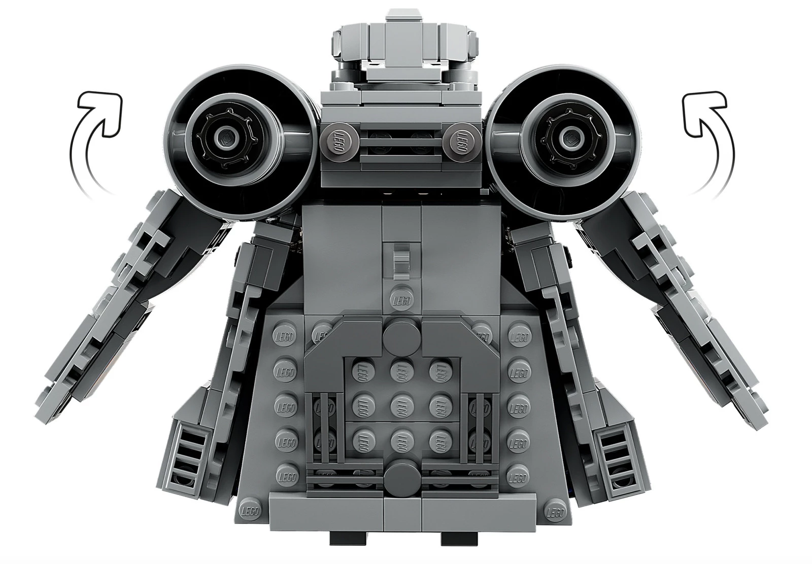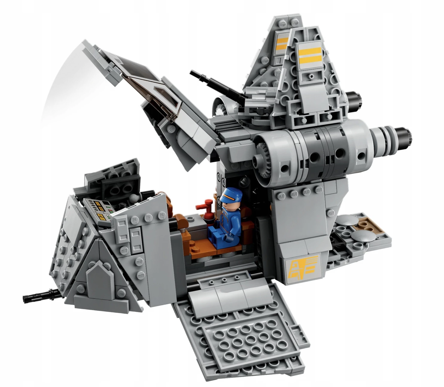 - Mobilna kapsuła – otwiera się od góry i po bokach, ułatwiając dostęp do szczegółowego wnętrza z miejscem dla pilota i siedzeniami dla nawet pięciu minifigurek LEGO®. Ma także regulowane skrzydła, podwójne obrotowe miotacze klocków i tylną rampę;
