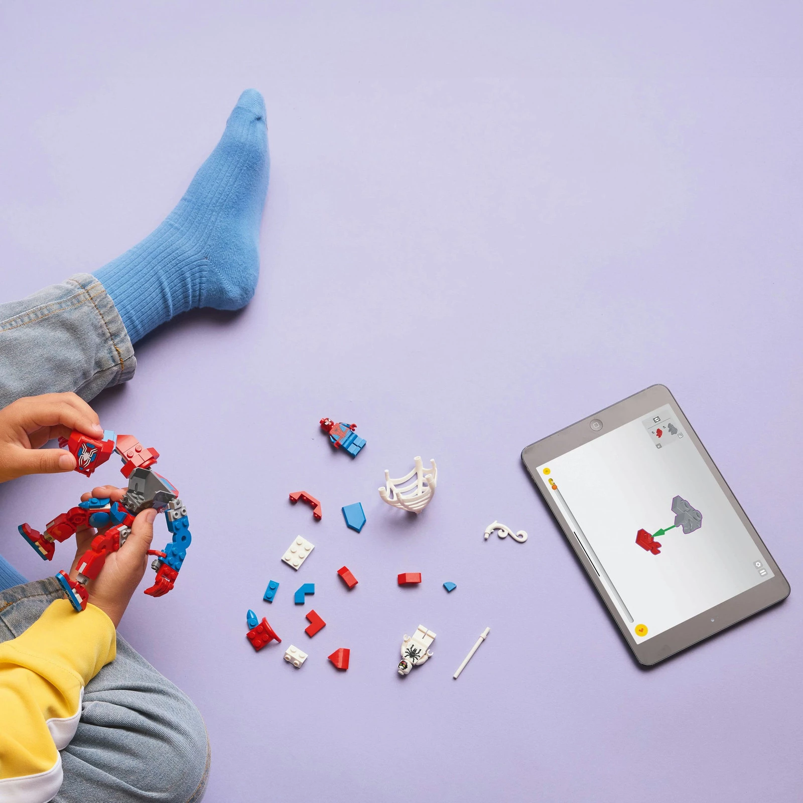 ➡️Figurka Spider-Mana do zbudowania — mech ma ruchome ręce, nogi i palce, a jego tułów otwiera się, odsłaniając kokpit, w którym można umieścić minifigurkę Spider-Mana