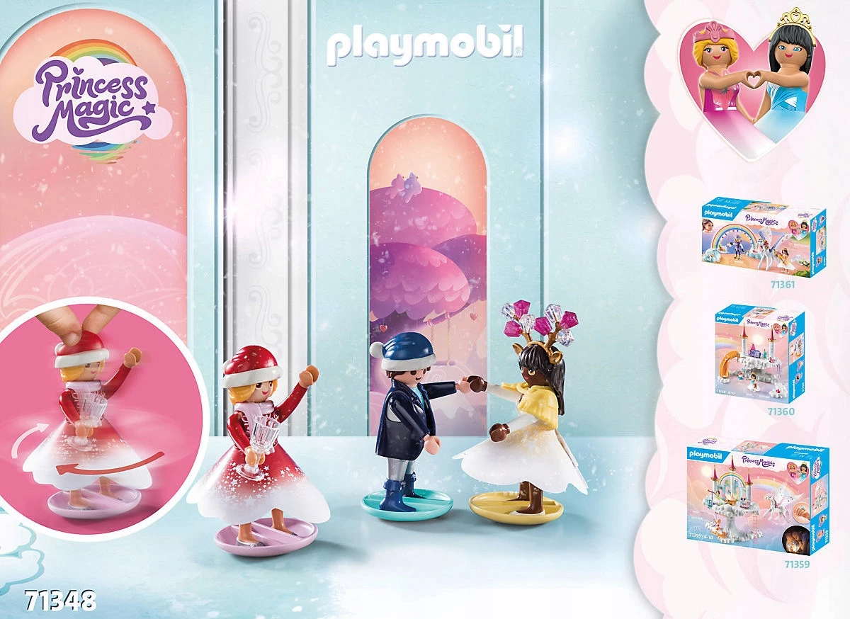 ➡️Podczas gdy książę gra kolędy na saksofonie, tęczowe księżniczki tańczą w rytm muzyki.