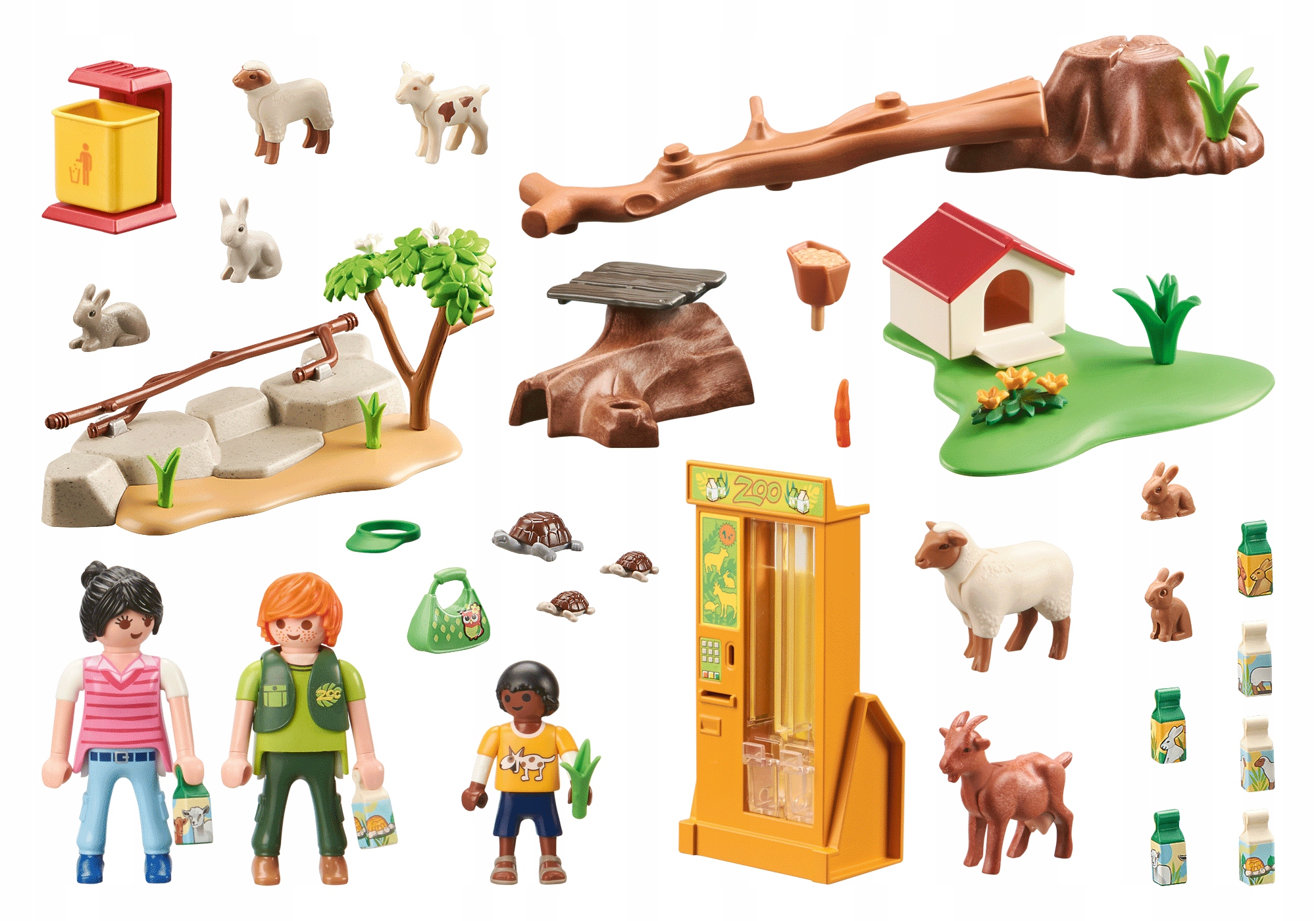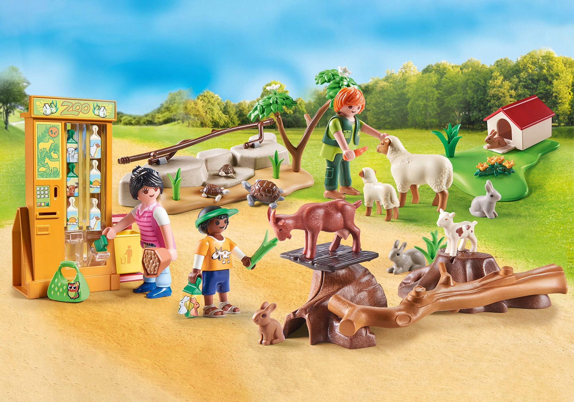 W zoo PLAYMOBIL mali miłośnicy zwierząt mogą zbliżyć się do swoich ulubionych zwierząt. Kozy i owce są już szczęśliwe i podskakują z podniecenia. Oczywiście nie zapomniano o żółwiach i królikach. Pięknie zaprojektowany zestaw dla dzieci, które kochają zwierzęta.