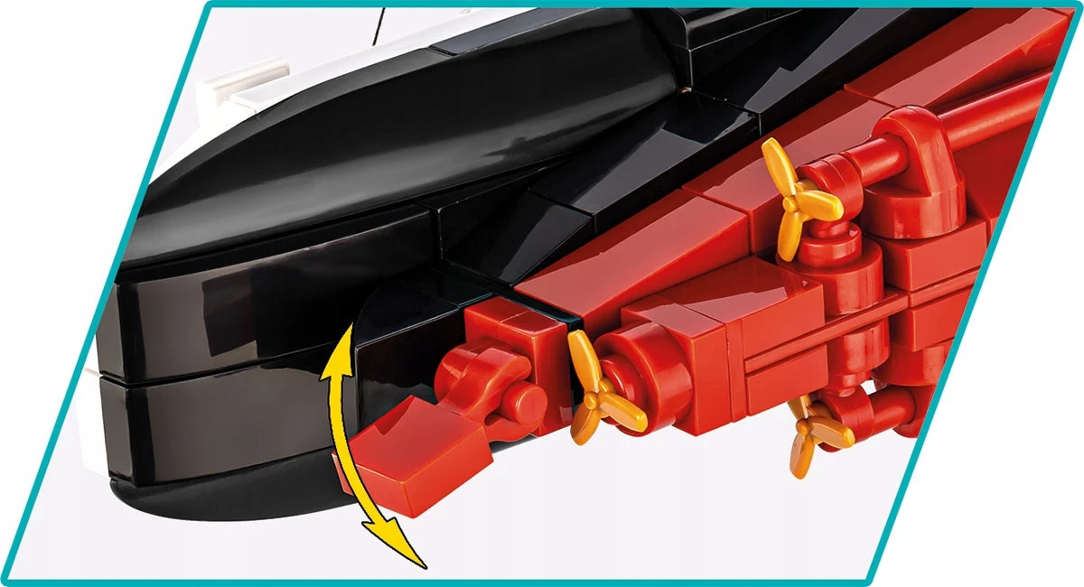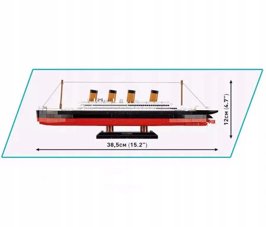 Zbudowany z 593 klocków konstrukcyjnych COBI, model ma 38,5 cm długości i 12 cm wysokości, w skali 1:700. Precyzyjnie odwzorowuje kształt i bryłę Titanica, a liczne detale, takie jak ruchome dźwigi, śruby i ster, zapewniają autentyczność i możliwość interakcji. Zestaw zawiera także elegancką podstawkę ekspozycyjną z tabliczką, co sprawia, że jest idealnym elementem do wyeksponowania w każdym wnętrzu.